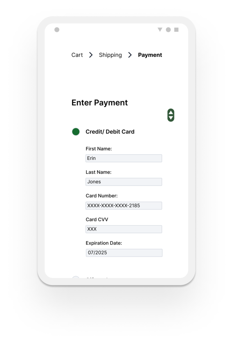 In my first usability test one user pointed out that they should be allowed to enter a different name for the credit card during checkout. They said this is especially important for people who may go by a different name. It also makes sense in cases where the person receiving the item may not be the same one paying for it.